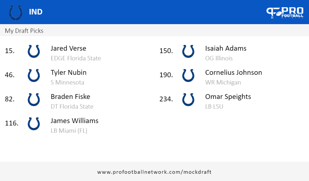 This mock was completed before the start of Free Agency, so none of the Colts re-signings were considered in this exercise.