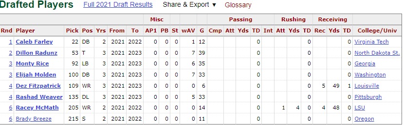 In his first free agency, just about two months after taking the job, Carthon’s moves were .. whelming? They didn’t have a ton of cap space, so no splash moves were expected, but the acquisitions were relatively inconsequential. Andre Dillard, Azeez Al-Shaiir, and Sean Murphy-Bunting have already since departed.